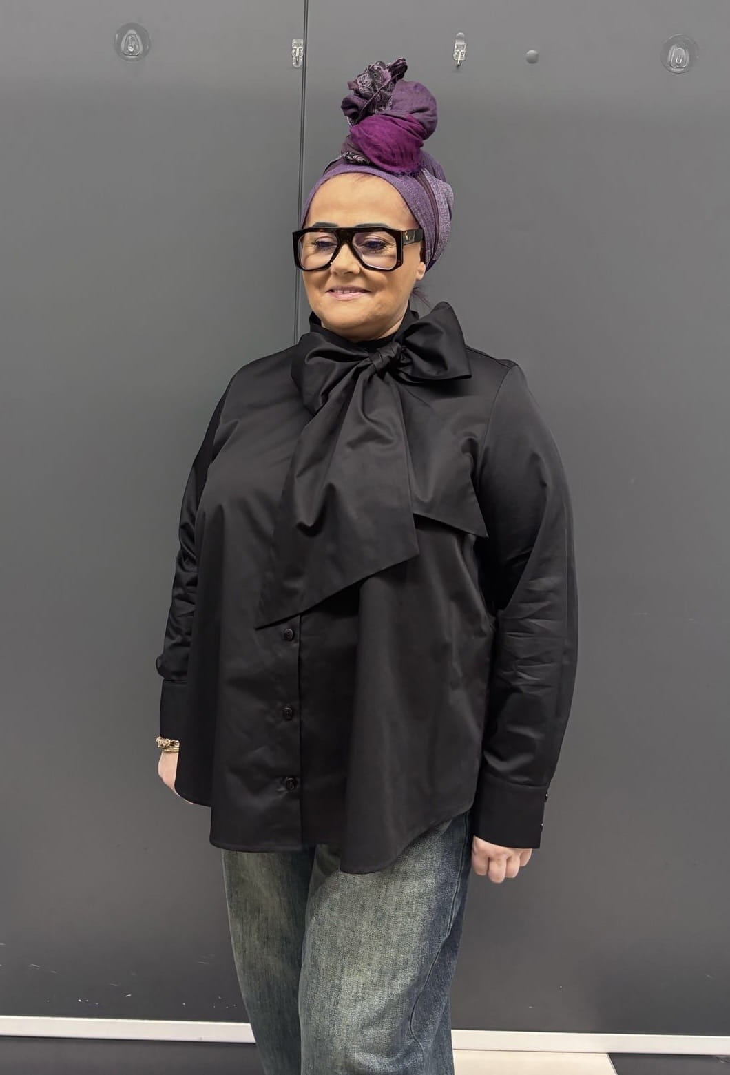 Koszula zapinana jest na guziki, posiada stójkę oraz ozdobną wstążkę pod szyją, którą można przewiązać tworząc kokardę bądź puścić swobodnie. Ma długie rękawy zapinane na guziki. Koszula jest lekko rozszerzana ku dołowi. Uszyta z bawełny, przez co świetnie sprawdzi się do całorocznych stylizacji.