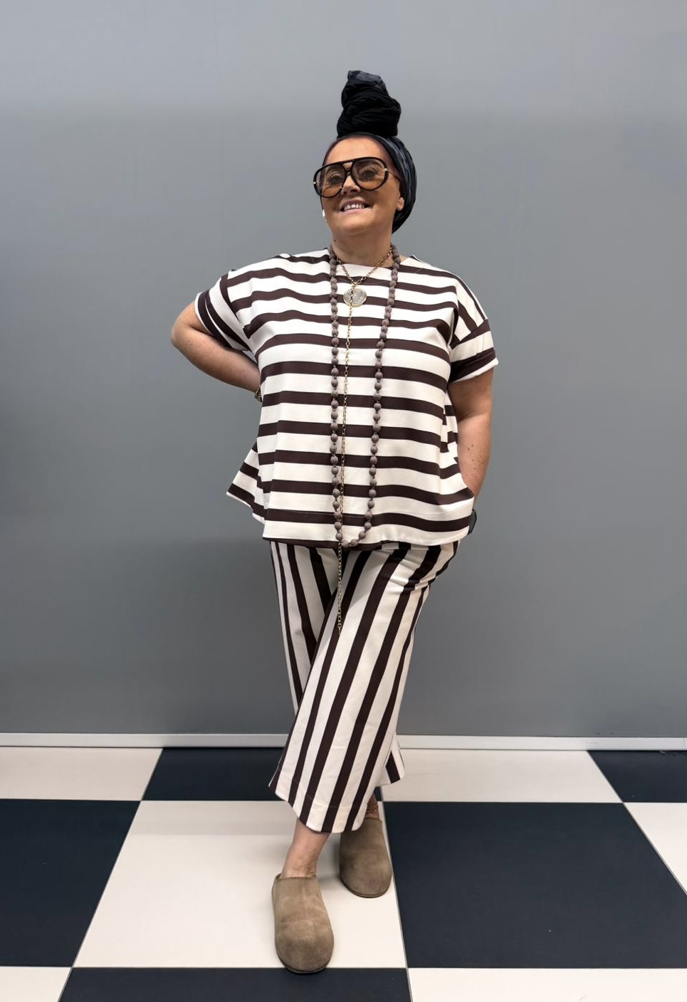 Komplet RIVABELLA w paski czekolada