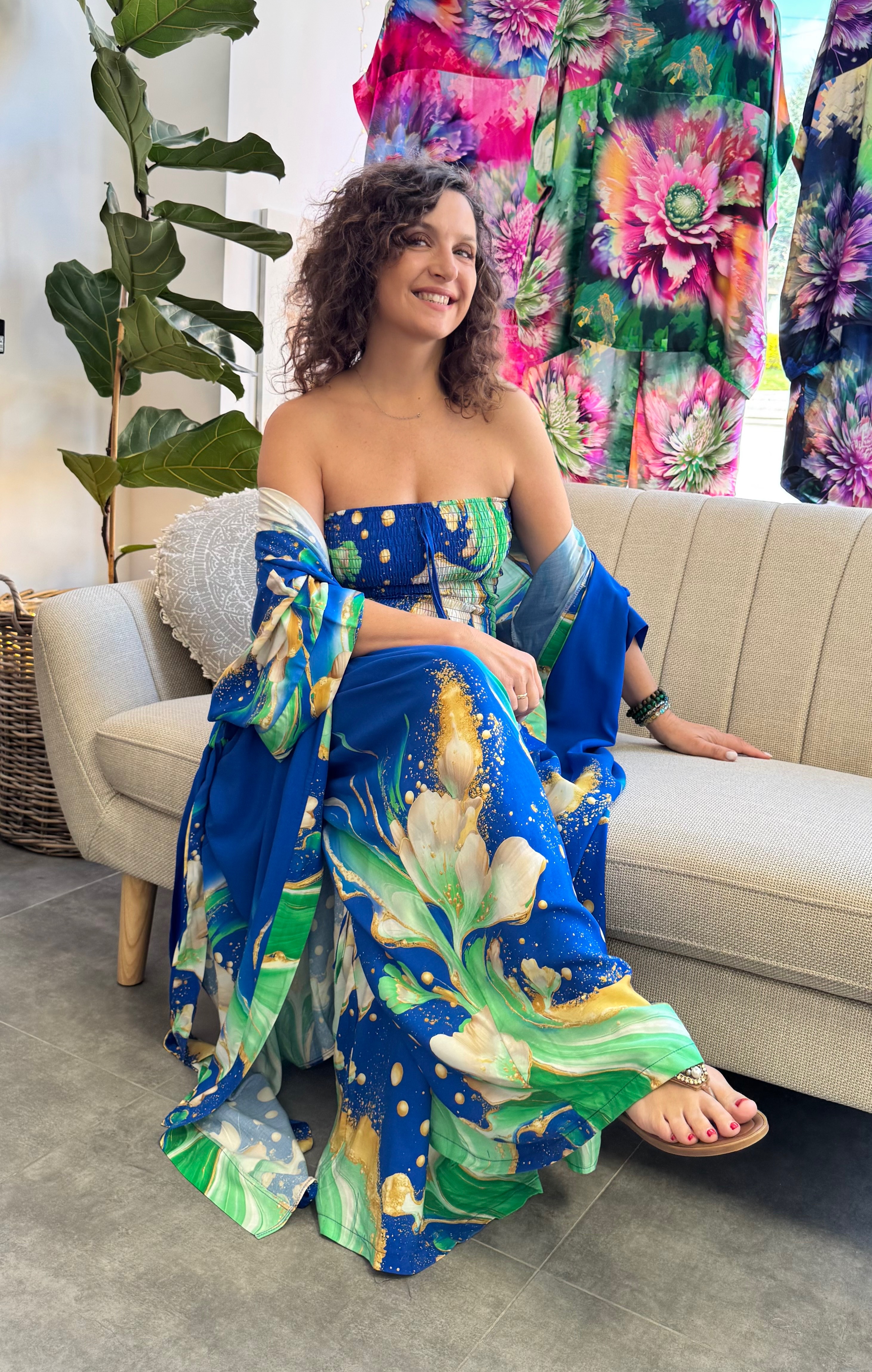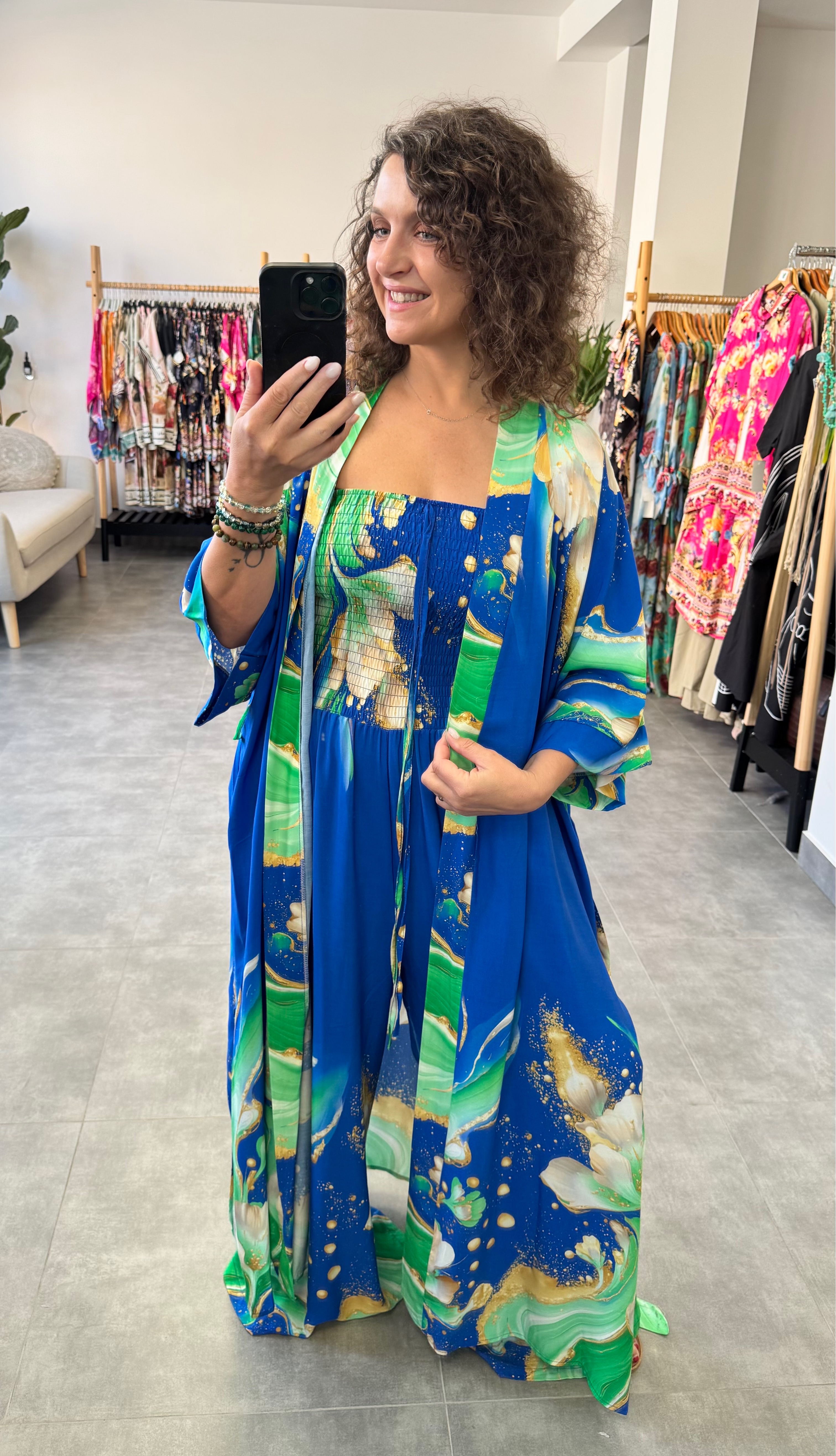 W zestawie piękna koszula, którą można wiązać paskiem.