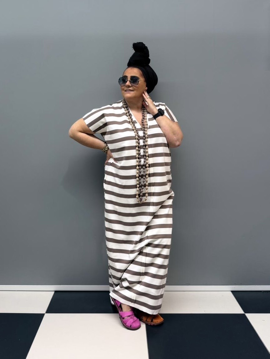 Sukienka RIVABELLA w paski czekolada